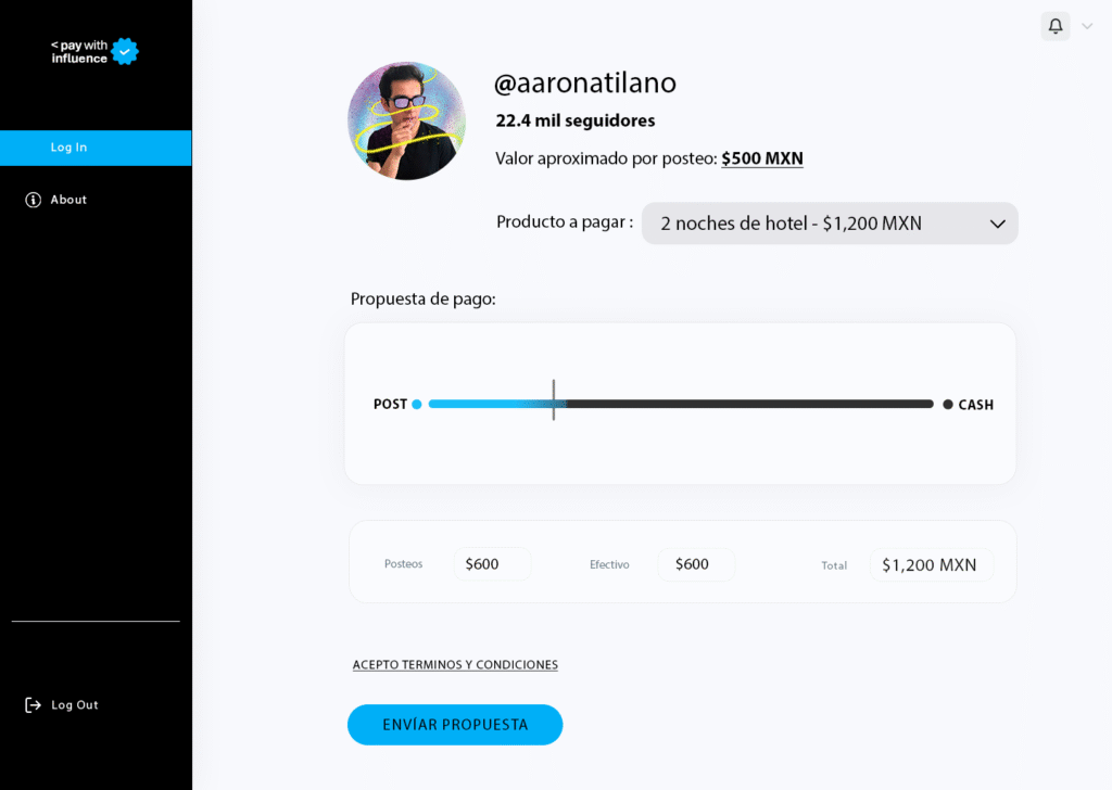 Con este análisis, el sistema estima el valor económico que podría tener el contenido del creador. A partir de ese cálculo, el influencer puede ver cuánto del producto o servicio puede pagar con su contenido y enviar una propuesta al negocio.